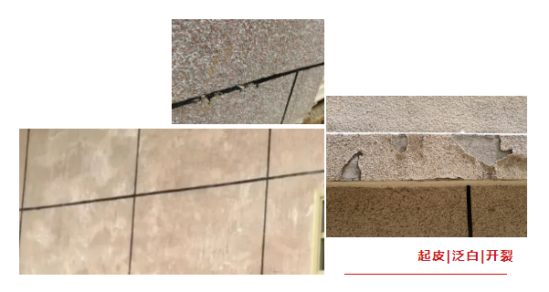 仿石漆外墻通常會出現(xiàn)的問題: